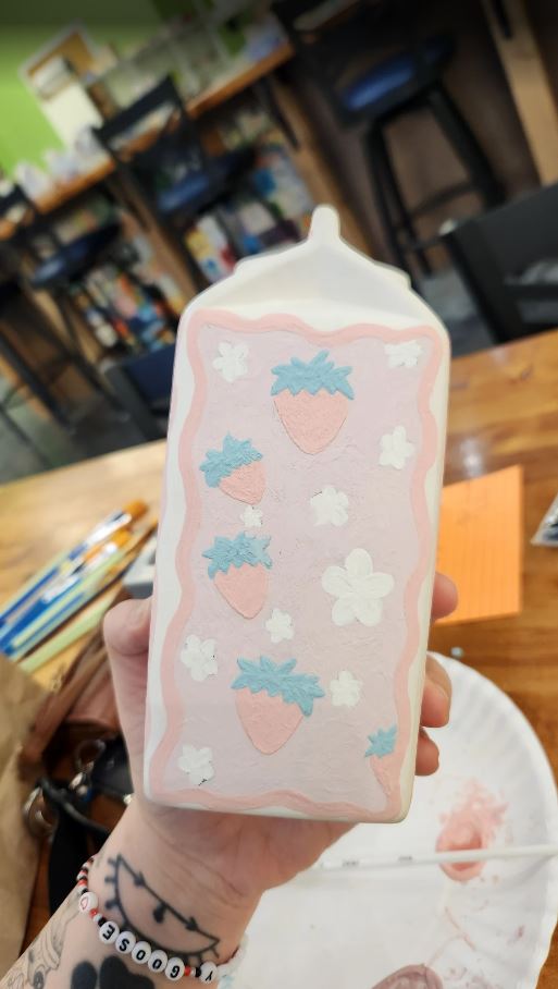 "This is such a nice chill spot to hang out and use your creative abilities to make beautiful art pieces! They offer such a wide variety of pottery to paint and have a really great wall of color selections. The prices are also pretty fair. I wish I didn’t have to wait so long for the end result but I know it will be well worth the wait so I don’t mind too much! I made an ocean themed vase and it was cool to be able to draw your own design and then paint it in. I will be coming back for sure!"