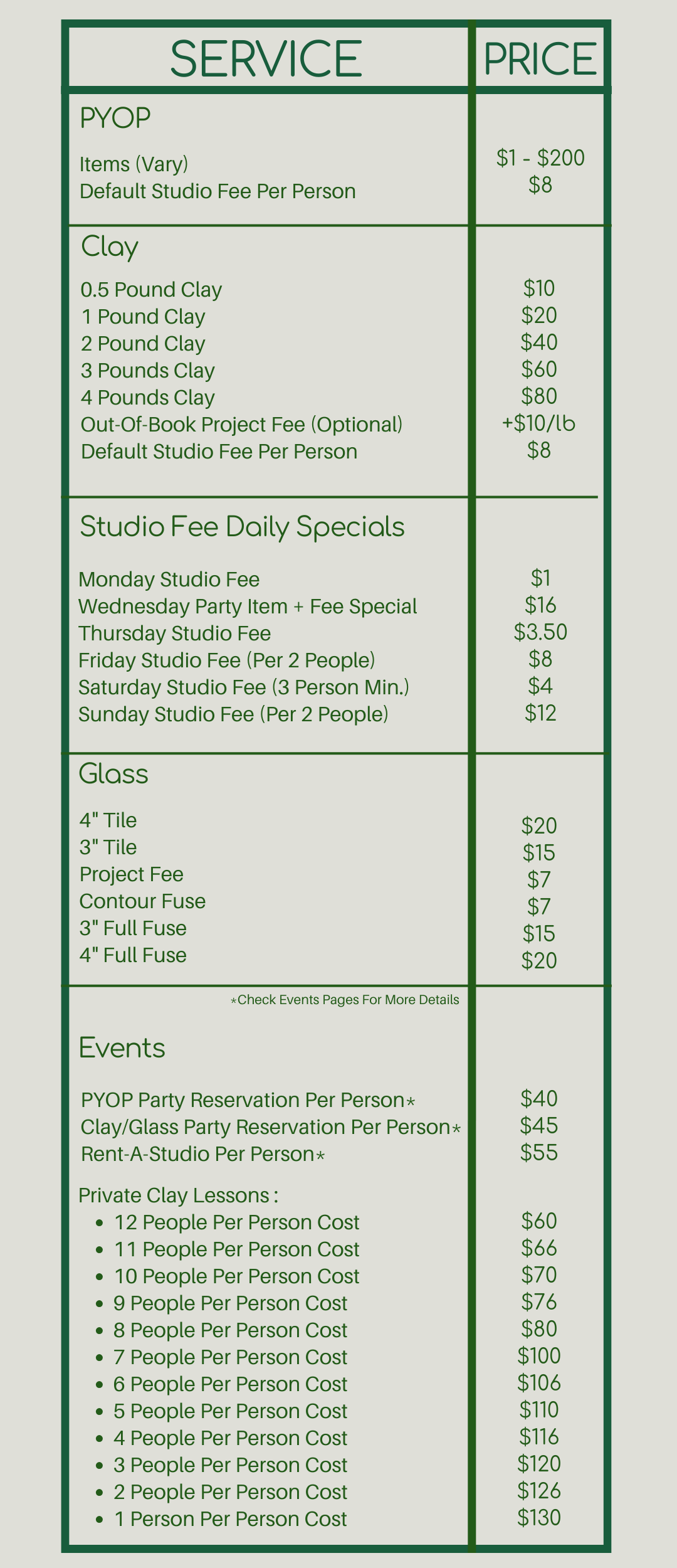 Saturday: $3 Studio Fee Per Person for 3+ People
